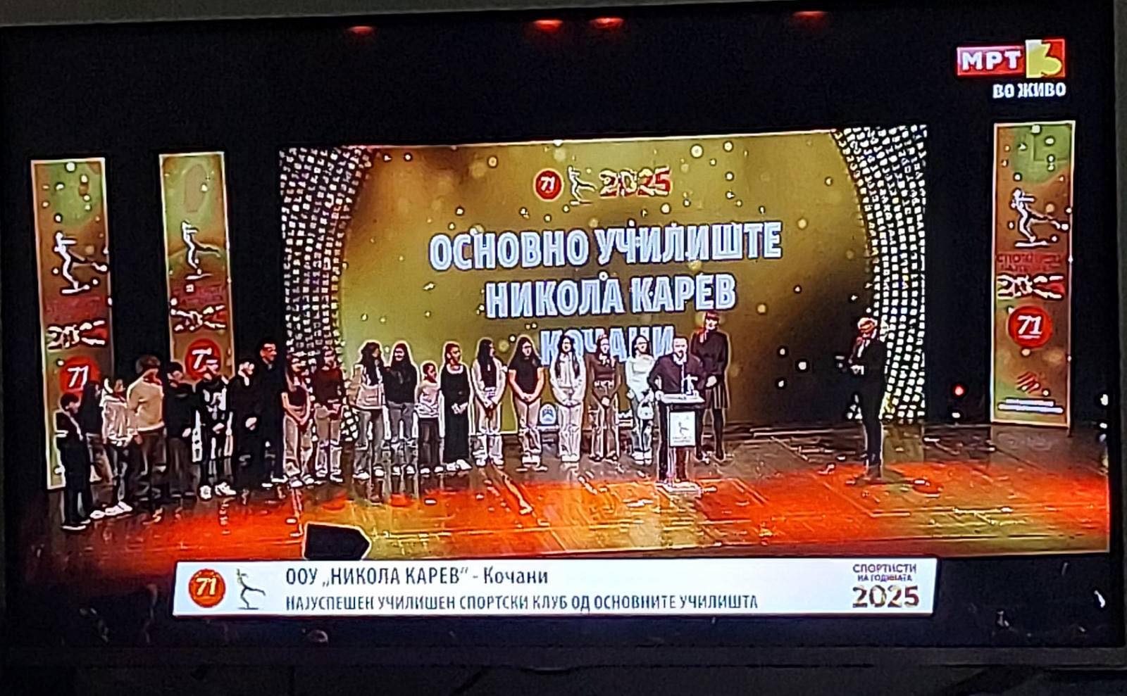 ООУ “Никола Карев” – најдобро основно училиште во областа на спортот во Македонија за 2025 година